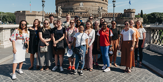 During their trip, the group took part in tours of the city, language classes, and guest lectures. They also had an opportunity to volunteer their time at Italian not-for-profit Citta Ecosolidale, which recycles clothing for people in need.