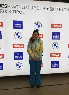 Jasmine at the International Bobsleigh and Skeleton Federation World Cup in Innsbruck, Austria. While sliding sports like skeleton and luge are uncommon in Australia, they are popular in many northern European countries.